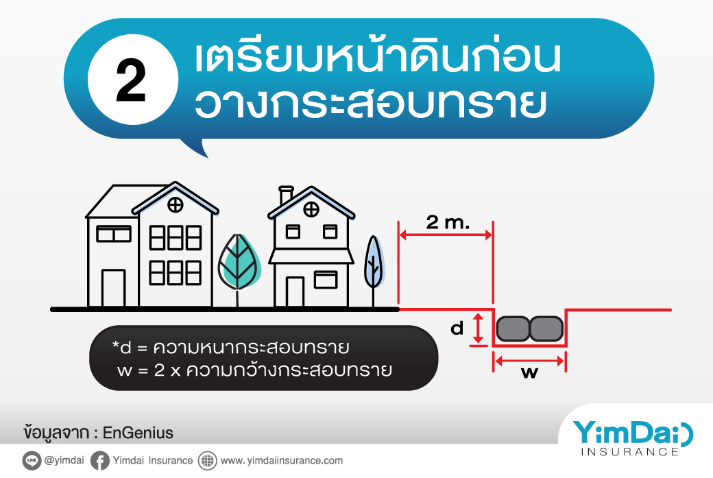 - เตรียมหน้าดินชั้นล่าง และขุดดินให้ลึกลงไปเทากับความหนาของ 1 กระสอบทราย