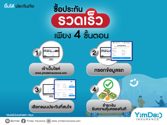- ติดต่อแจ้งคำร้องต่อประกันได้ที่ 02-432-2345 หรือ Line: @yimdai