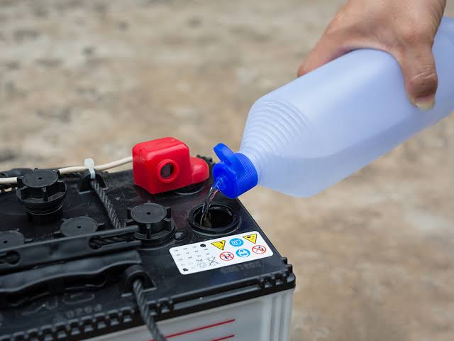 การตรวจเช็คน้ำกลั่นอย่างสม่ำเสมอ ไม่ปล่อยให้น้ำแห้ง ถ้าเป็นแบตเตอรี่ที่ต้องเติมน้ำกลั่น ควรหมั่นเช็คและเติมน้ำกลั่นให้อยู่ในระดับที่พอดีอย่าให้น้ำกลั่นแห้ง หรืออยู่ต่ำกว่าขีดต่ำสุด และไม่ควรเติมน้ำกลั่นให้สูงเกินไป เพราจะทำให้ขั้วแบตเตอรี่สกปรกและมีขี้เกลือขึ้นเร็ว ที่สำคัญ! ห้ามใช้น้ำกรดหรือน้ำกลั่นที่มีสารเคมีผสมเติมลงไปเด็ดขาด