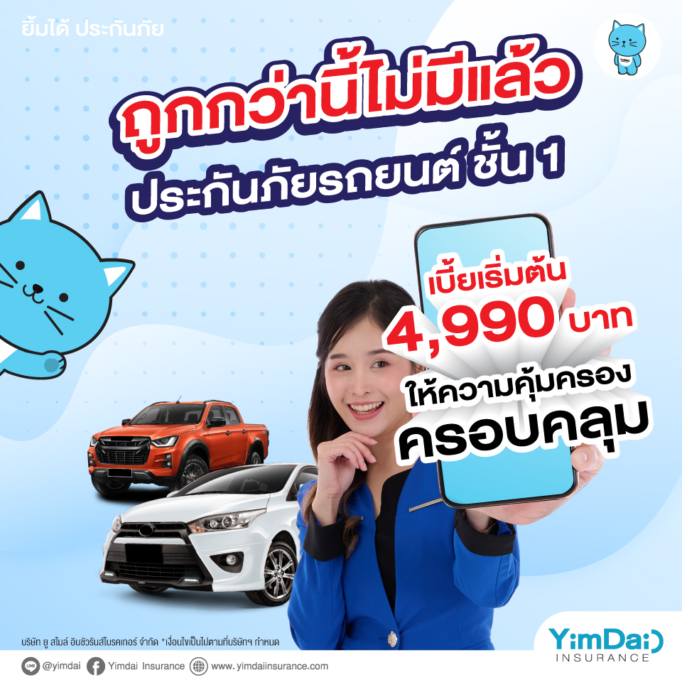 สำหรับใครที่มองหาประกันภัยรถยนต์ราคาถูก และตรงกับความต้องการ สามารถทำได้ที่ ยิ้มได้ประกันภัย เพียงโทร 02-432-2345 หรือ ซื้อประกันภัยรถยนต์ผ่าน www.yimdaiinsurance.com เพื่อรับความคุ้มครองที่คุ้มค่าที่สุด
