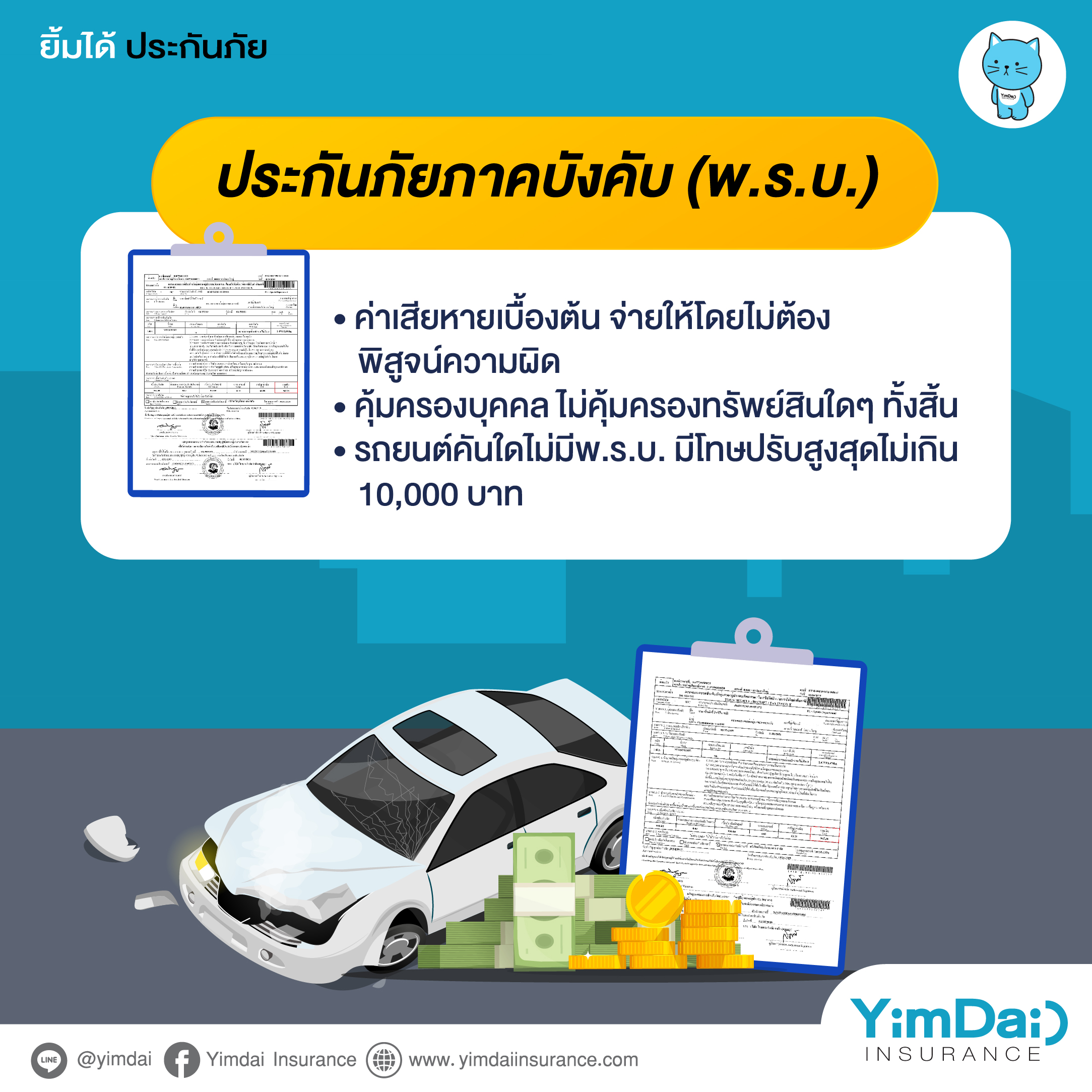 - รถยนต์คันใดไม่มี พ.ร.บ. มีโทษปรับสูงสุดไม่เกิน 10,000 บาท