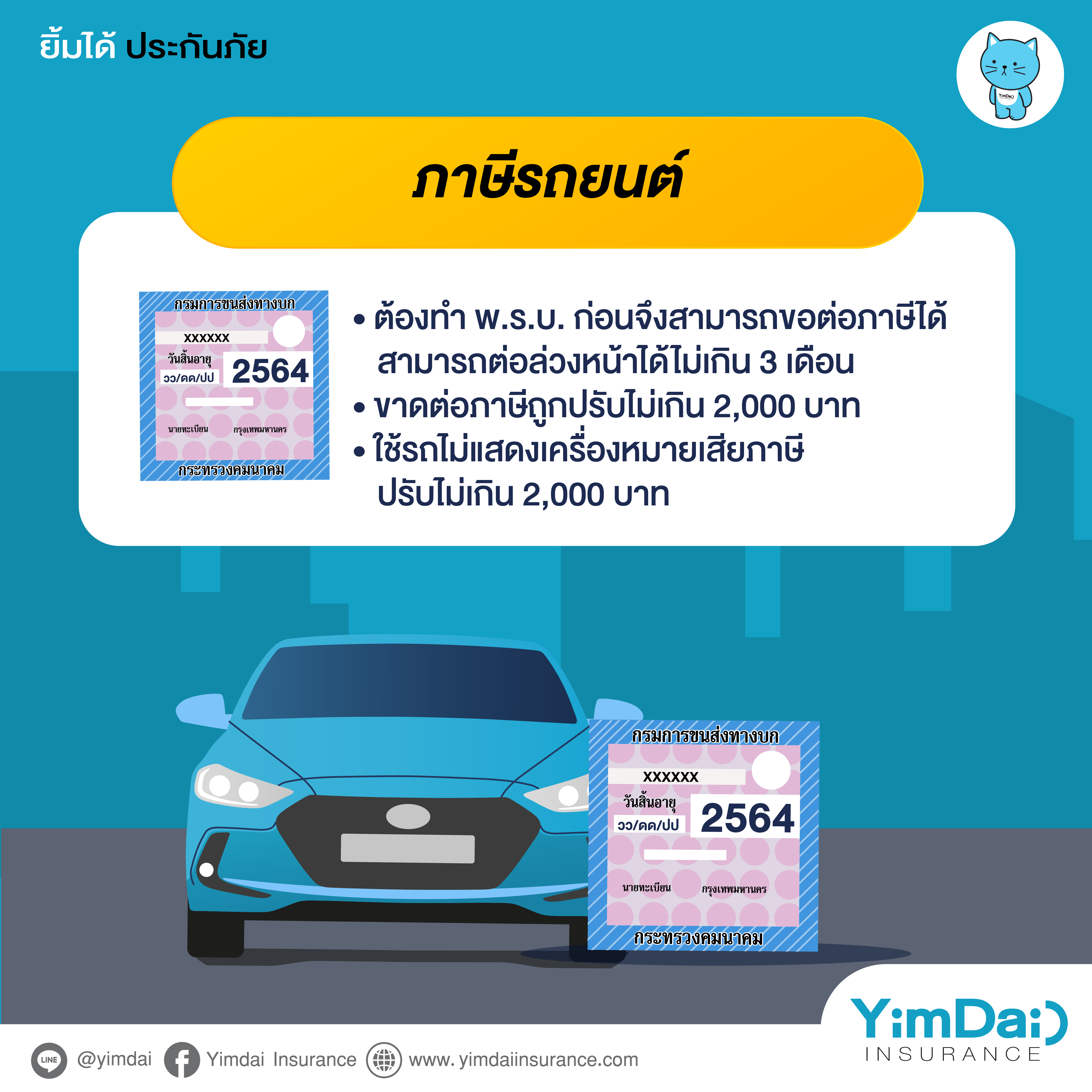 - ขาดต่อภาษีถูกปรับไม่เกิน 2,000 บาท