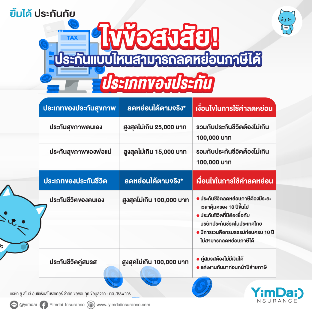 - ประกันชีวิต: สามารถหักเบี้ยประกันชีวิตได้สูงสุดไม่เกิน 100,000 บาท