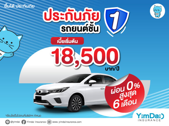 สนใจทำประกันภัย คลิกเลย! >> ประกันภัยชั้น 1 *เงื่อนไขเป็นไปตามที่บริษัทฯ กำหนด |
