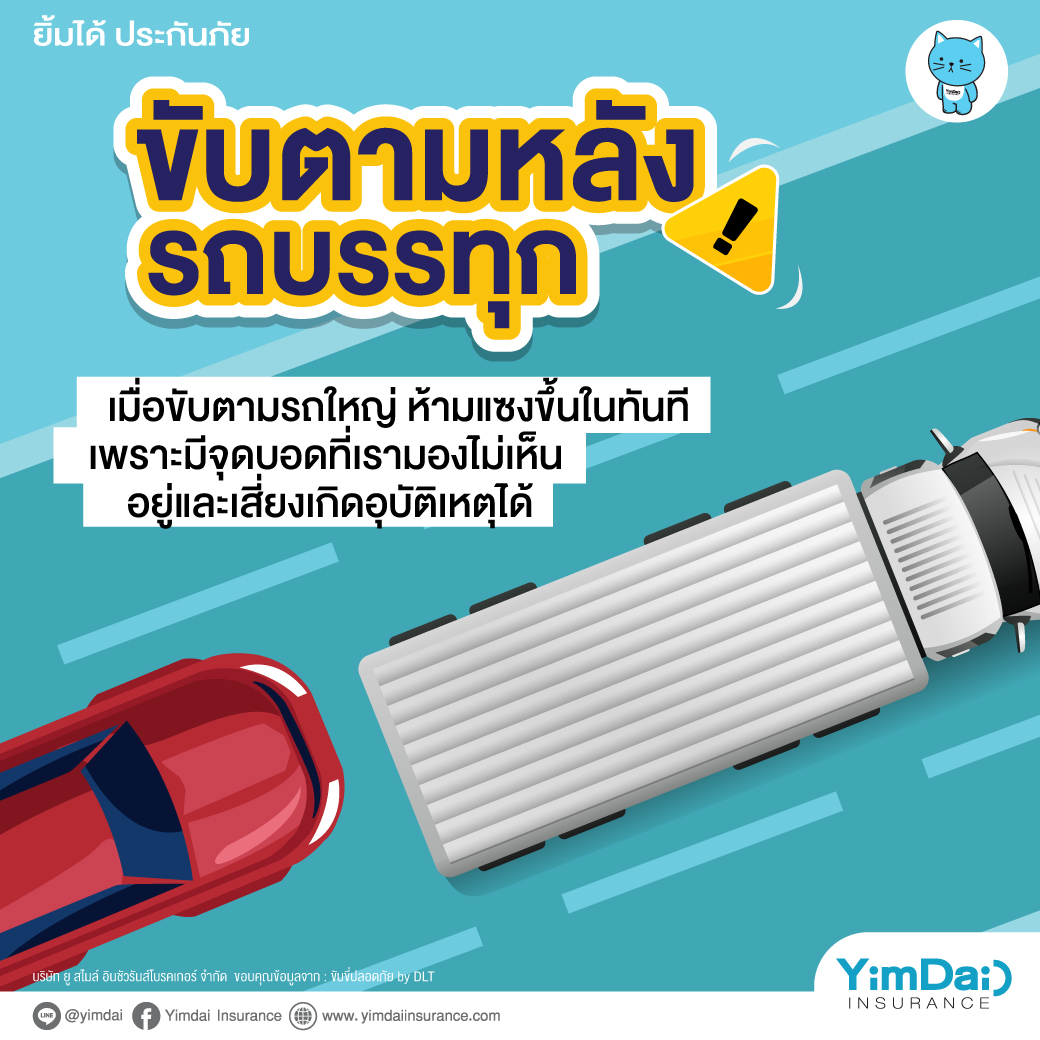 - ห้ามขับแซงซ้ายขึ้นไป เพราะรถใหญ่มักจะมี จุดบอด อยู่ทางด้านซ้าย ทำให้มองไม่เห็นรถของเรามีความเสี่ยงที่จะเกิดอุบัติเหตุ