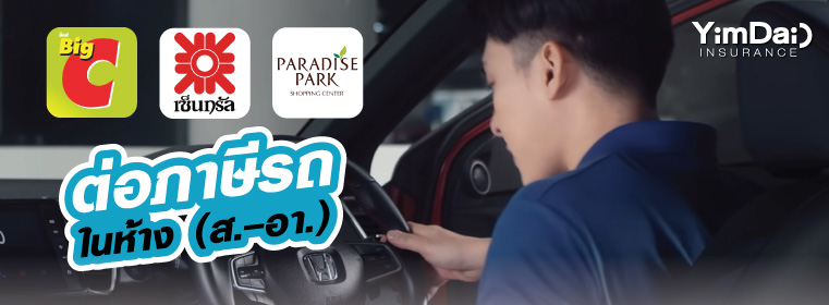 ท่านใดที่ต้องเข้าไปจับจ่ายซื้อของอยู่ตลอด คงไม่มีปัญหาอะไรเพราะมีห้างสรรพสินค้าจำนวนมากมายที่เข้าร่วมให้บริการต่อพ.ร.บ.รถยนต์แล้ว ที่สำคัญสามารถต่อวันเสาร์-อาทิตย์ได้ด้วยนะคะ (สามารถต่อพ.ร.บ.ได้ตั้งแต่เวลา 09.00-18.00)