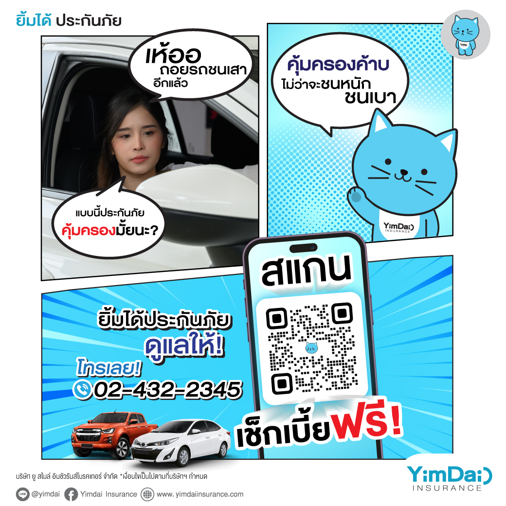 สำหรับใครที่กำลังมองหาประกันภัยรถยนต์ราคาถูก และตรงกับความต้องการ สามารถทำได้ที่ ยิ้มได้ประกันภัย เพียงโทร 02-432-2345 หรือ ซื้อประกันภัยรถยนต์ผ่าน www.yimdaiinsurance.com เพื่อรับความคุ้มครองที่คุ้มค่าที่สุด