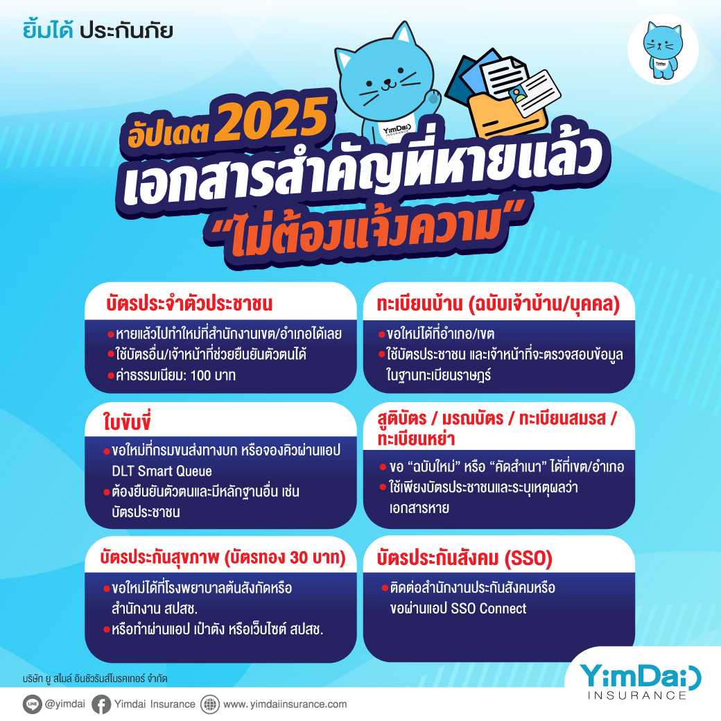 เคล็ดลับ: ถ่ายเอกสารและเก็บสำเนาเอกสารสำคัญไว้เสมอ หรือถ่ายรูปเก็บไว้ในมือถือ/คลาวด์ เพื่อความสะดวกหากต้องขอทำใหม่