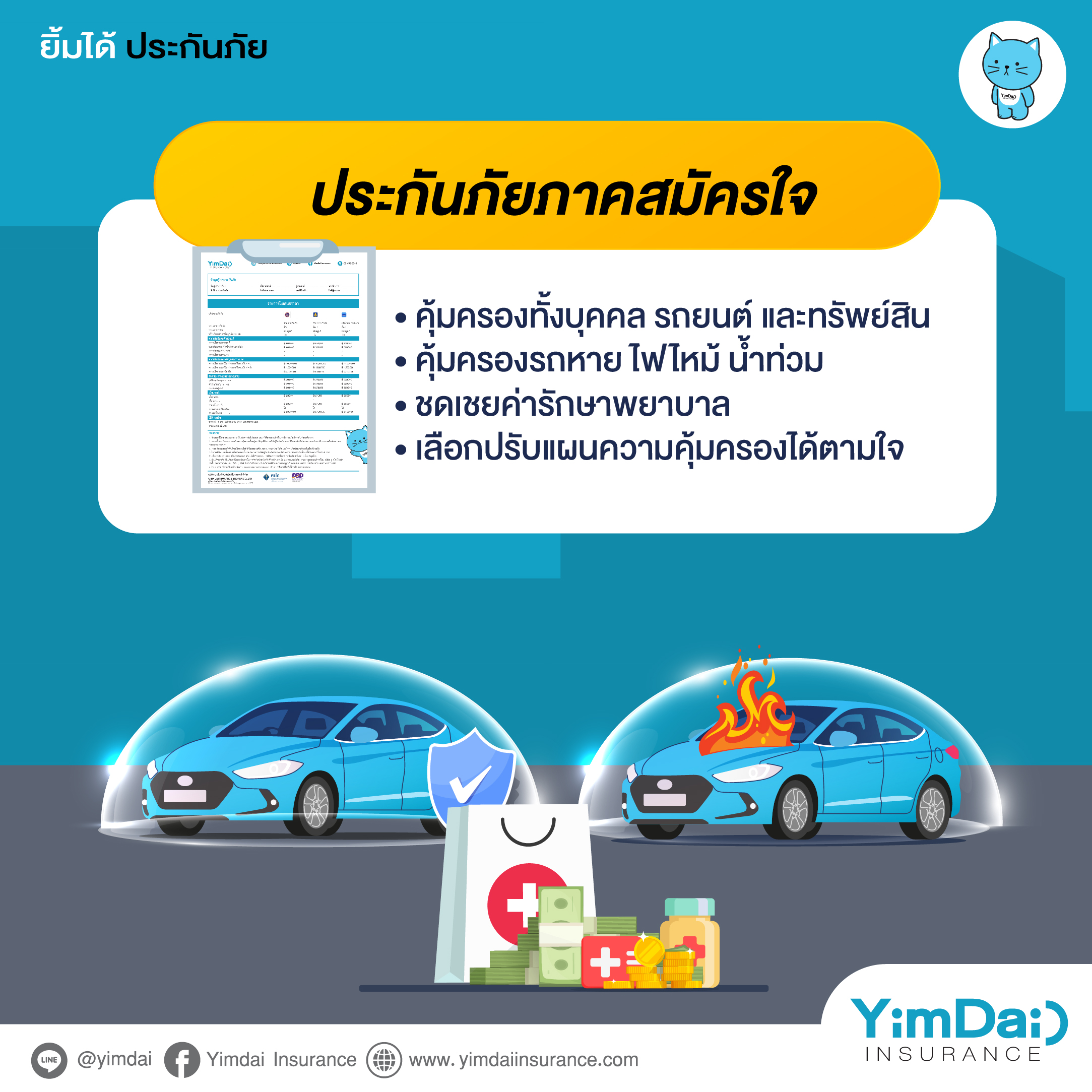 - คุ้มครองทั้งบุคคล รถยนต์ และทรัพย์สิน