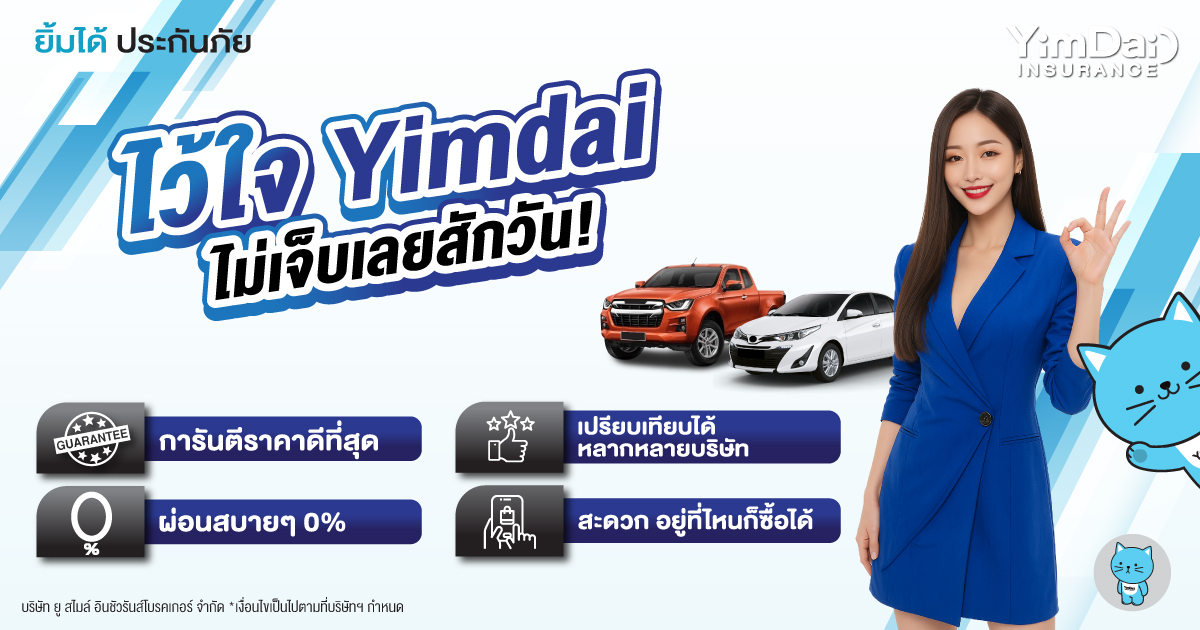 สำหรับใครที่มองหาประกันภัยรถยนต์ราคาถูก และตรงกับความต้องการ สามารถทำได้ที่ ยิ้มได้ประกันภัย เพียงโทร 02-432-2345 หรือ ซื้อประกันภัยรถยนต์ผ่าน www.yimdaiinsurance.com เพื่อรับความคุ้มครองที่คุ้มค่าที่สุด