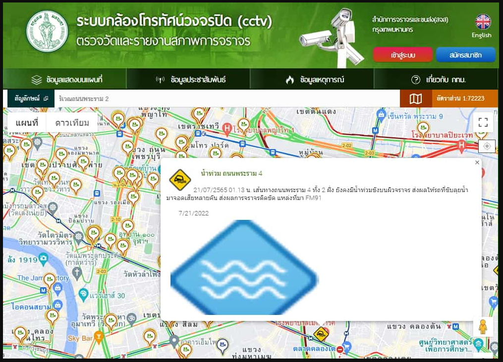 สามารถดูกล้องเพื่อเช็คสถานการณ์น้ำท่วม หรือ สภาพจราจรจากกล้อง CCTV ซึ่งจะอัปเดตกันสดๆ แบบ Realtime
